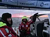 De tre seilerne Toffen Thorleifsson, Børge Ousland og Stas. Kostyashkin er nå halvveis i Karahavet, parallelt med Dickson, en avsidesliggende landsby fjernt fra folkeskikken. Om 3-4 dager regnert man med å nå porten til Laptevhavet. Her er isen tett, og det skal sønnavind til for at stredet skal åpne seg. Nå er det nesten vindstille, en kjærkommen avveksling fra bankekryssen de siste dagene