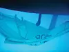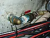 Med et seil spent opp for å fange eventuelle deler ble foldepropellen demontert.