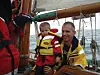 Vårt siste tilskudd på mannskapslisten har rukket å bli fem måneder gammel. Noen justeringer er gjort for å tilpasse skuta til seilas med to små. Marius har funnet seg til rette i vogn-bagen i salongen, og Eirik er en stolt og meget aktiv storebror. Eirik skulle nok helst sett at Marius hadde vært med på leken med én gang.