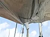 REGNVANN: Regnvann samles opp av solseilet og ledes via en slange ned i bøtten.