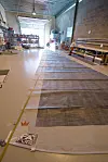 PÅ GULVET: Slik arter det samme Bavaria 46-storseilet seg på gulvet i seilloftet.