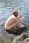 Etter en kort tur til Selje for nye forsyninger, gikk turen til klosterøya Selja. Pensjonert fisker Olaf (88) på brygga godkjente fortøyninga vår med tanke på tidevannforskjeller og ønsket god tur til klosterruinene. Der drakk vi vann av St. Sunnivas kilde som skal gjøre den som drikker av den med høyre hånd mens han kneler både yngre, sprekere og penere, og vi besøkte hulen der Sunniva og hennes irske munker ifølge legenden skal ha blitt begravd av et steinras da de ba sin gud om å redde dem fra lokale bønder som mente de stjal sauer.
