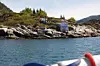 Og folkekongen hilser båtfolket velkommen fra toppen av knausen der han skuer vestover utover den spektakulære skjærgården.