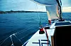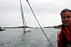 Etter runding i Strømstad satte vi gennaker for noen hunder meter. Vi rotet med settingen, og verken tjente eller tapte på jobben. Hadde vi bare hatt en strømpe. Vi burde tatt et rev i storseilet opp mot Tresteinene utenfor Hvaler, men revelina var for kort, noe som ville ha gjort at vi ville tapt mye på å sette revet, for mye for at det skulle vært lønnsomt.