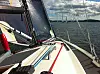 Fokka som aldri hadde vært brukt før viste seg å ikke være optimal. Underliket blafret enormt, noe som forplantet seg i hele forseilet, og som også påvirket storseilet. Seilet hadde vært sydd om dagene før, og jeg tror nok en eller annen som ikke var helt som den skulle være. Seilet har også myke spiler for rulle. Vi tapet på en slik spile på underliket og det hjalp mye.
