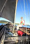 Seilllærer Ketil Sildnes og Ane S. Bergerud viser hvordan man seiler halvfjerdrømmingen"Svart-Erik" i lite vind. Alle foto: Linn og Ørjan Krogh Hansen.