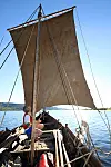 Kjetil forteller at råseilbåter har fått et litt ufortjent dårlig rykte på seg for å være elendige på kryss. Selv om de først og fremst seiler best på halvvind og unnavind er de langt bedre enn sitt rykte på kryss. – Vi kan seile inntil 50 graders vinkel faktisk, understreker han og gir ordre om at vi skal vende.