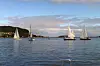 STILLE: Ikke mye vind under starten i dag. Begge foto. Fjordsailing ShetlandRace.
