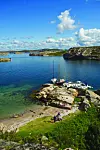 UTSIKT: Fra toppen av Trinisla ser man ut over havet mot vest. Det er fortsatt plass til noen båter til.