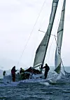Tre mann fikk seg en dukk i vannet da båten broachet og la rekka under vann. De ble holdt inne av rekkelinen og havnet ikke i sjøen, men ble bare godt dukket. Exit (Express)