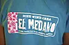 FORBLÅST: High Wind Area står det på turistskjorta fra El Medano. Det stemmer godt.