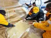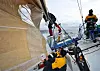 Med Sikaflexsen har seilmakeren limt på store biter av kevlar og Cuben-fiber på storseilet. Jobben var mer som å bygge en båt enn å reparere seil. For å gjøre jobben måtte seilet senkes til tredje revet for nesten syv timer.
