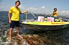 KONTROLLERT TILNÆRMING: Vi nærmer oss skjæret med putrefart. t.h: Rune Sagvolden holder arbeidsbåten «Panter'n» på trygg avstand slik at den ikke berører skjæret.