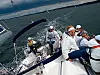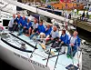 OVER: Jentegjengen på «Ada» endte på 466 plass, men tok det med knusende ro. FOTO TIL HØYRE: Guttene fra Larvik SF slapper av etter vel gjennomført seilas. Fra venstre: Hans Haegerström, Glenn Haugestad, Kristoffer Borge, Raymond Raastad, Ole Oscar Hvass, Kjetil Andre Engvoldsen, Jørn Spetalen, Kristian Hender, Lars Jonas Ødegaard og Øyvind Gjone. alle foto: Lisa Nestorson.