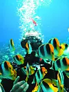 OPPLEVELSER: De franske selskapsøyene byr fortsatt på fantastiske opplevelser under vann. Som for Otto i en stim av papegøyefisk.