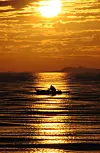 FERGE: Selv de svære fergene har sine støttemeier. Menneskene om bord er heldekket i fortvilte forsøk på å holde huden hvit, og de fleste har klassiske rismarkhatter på hodene.