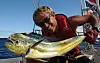 DORADO: En dorado ble til en fin fin forrett under bursdagsfeiringen om bord. Kyrre viser stolt frem fangsten.