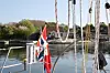 Og for oss ble avdslutningen av vestlandsturen til å leve med, her vi sitter i morgensolen i Gamle Hellesund og gleder oss til en rolig seilas østover i Blindleia.