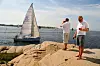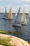 SEILGAL: Melges 24 med Per Helgesen og kameratene vant racing-klassen i den svake vinden. T. H. mange hadde tatt turen til Homlungen fyr for å overvære starten. Alle foto: Linn Krogh Hansen.