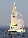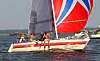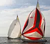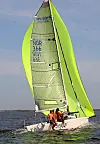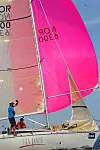 «SIXPACK»: Halvtonneren med den rosa spinnakeren kom inn som toer i racingklassen.