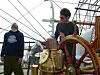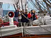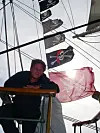 OVER: Mark og Nis slapper av på poopen. t.h: Her er beviset, det er mulig å krysse med en fullrigger. Under optimale forhold (som vi hadde i dag) slår vi gjennom ca 120 grader. Alle foto: Halvor Stubberud Hanssen.