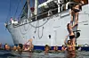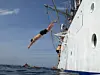 At det sikkert ikke var mer enn 16-17 grader fant vi først ut etter å ha hoppet uti, uten at det la noen demper på badegleden til mannskapet og medseilere..