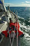 Vestavind ga oss gennakerslør fra Stavern til Hankø. Med vind opp mot 10 m/s marsjet vi avgårde og så nesten 10 knop på loggen.
