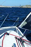Bildet over: Slik endte regataen for oss. Vi broachet i trangt farvann, og fikk ikke tilbake styringen før vi gikk i steinene. Foto: Peter Gustavssson i blur.se.