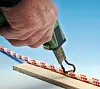 BRUK TEIP: Tauverket skjæres enklest over ved først å vikle teip rundt skjærestedet. Da er det lettere å brenne enden pent. Uten teip fliser tauet seg fort opp. Skjær tauet i kanten av teipen eller gjennom teipen.