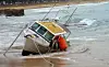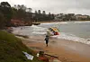 Stormen i den australske feriebyen Terrigel førte til at startbåten som skulle brukes under de neste dagers VM-seilaser for Laser havnet på stranden.