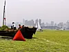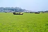 Lise Birgitte Fredriksen beretter i et nyhetsbrev at regattabanene er dekket med tykt grønt gress som det er lett å bli sttende fast i. - Vi prøver å finne veier rundt. Det er ikke lenger seiling vi driver med, men orientering på et bevegelig kart, sier hun. - Det hele er ganske surrealistisk, men det var det samme før prøve OL ifjor, men da regattaen fant sted var alt ryddet bort.